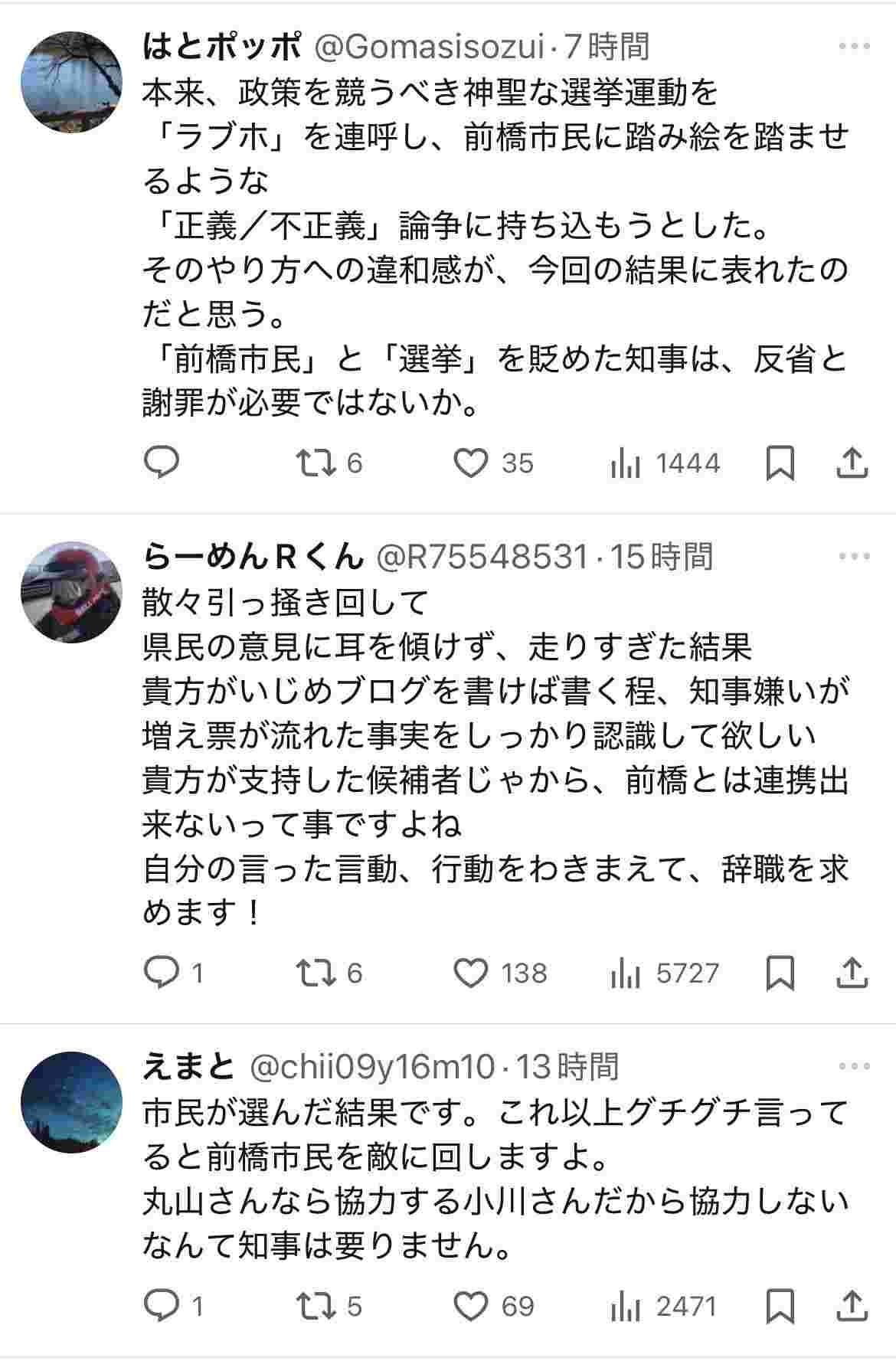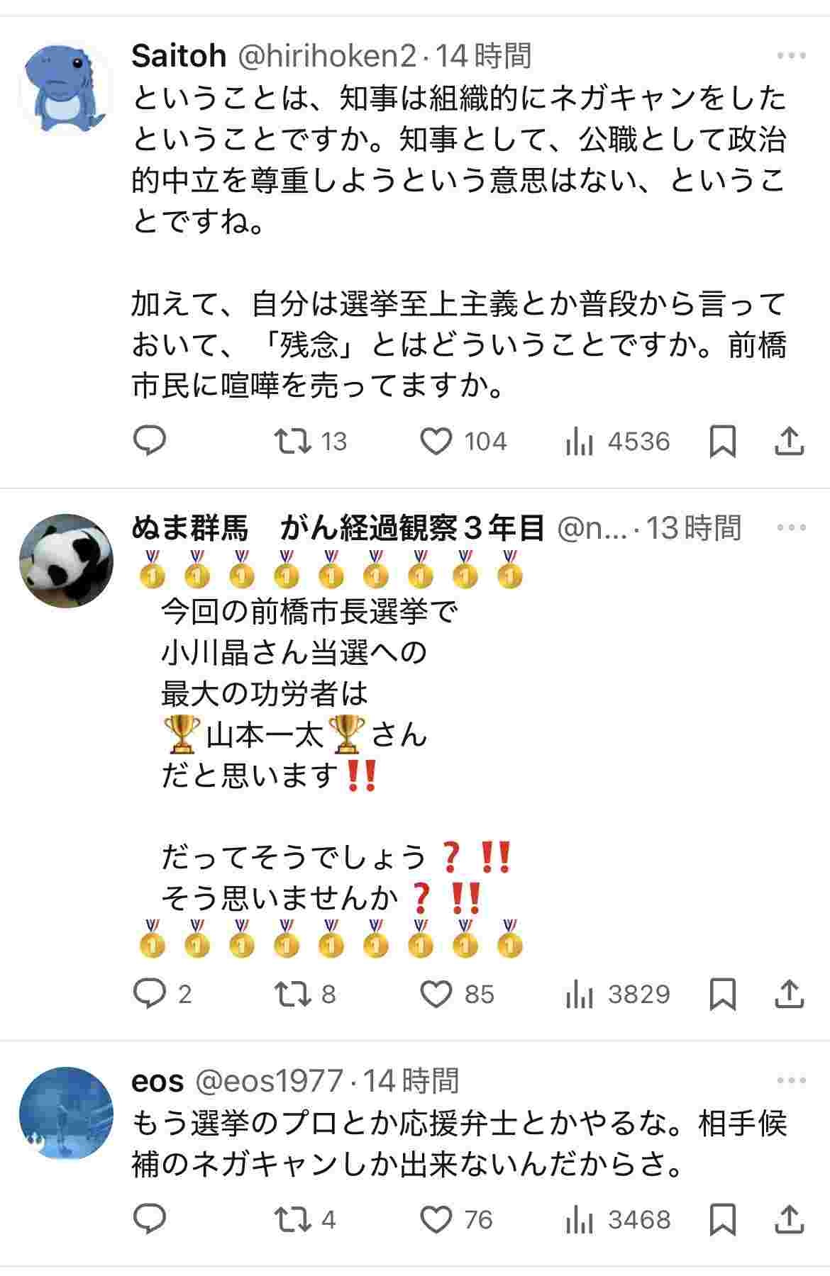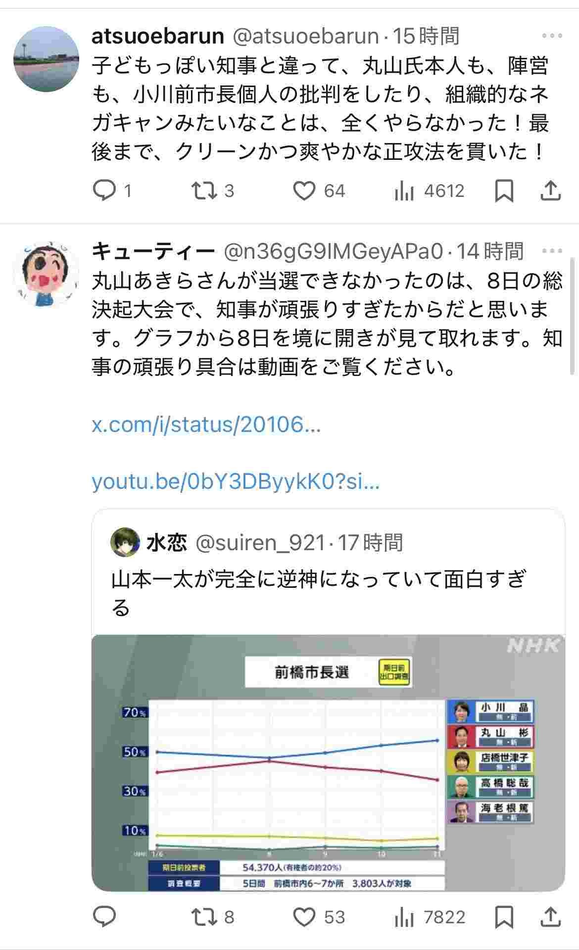 【高市🔥】山本一太群馬県知事、小川支持派と丸山支持派の双方向から攻撃を受けるwww