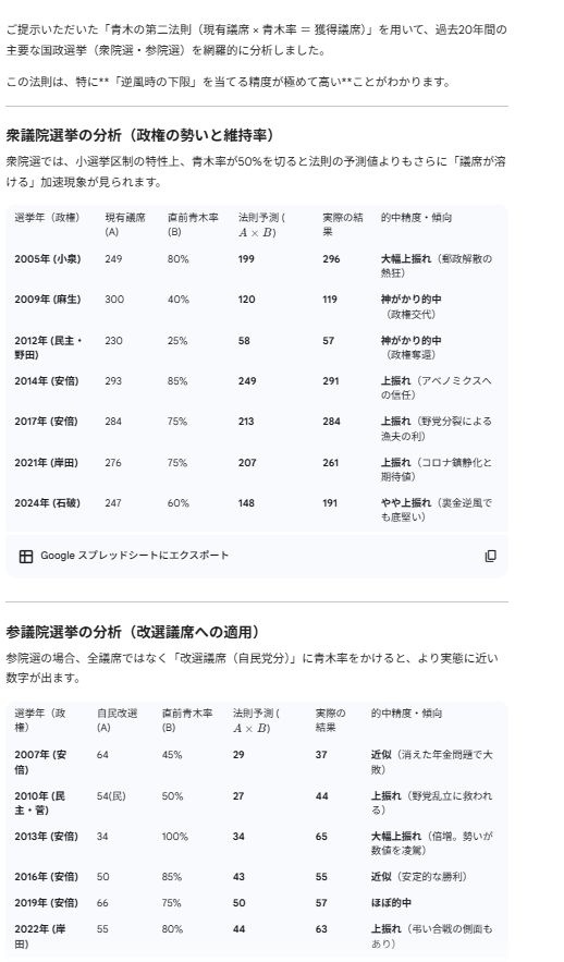 なるほど高市もこの青木率を参考にしてあの260議席獲得のやつを信じたんだな