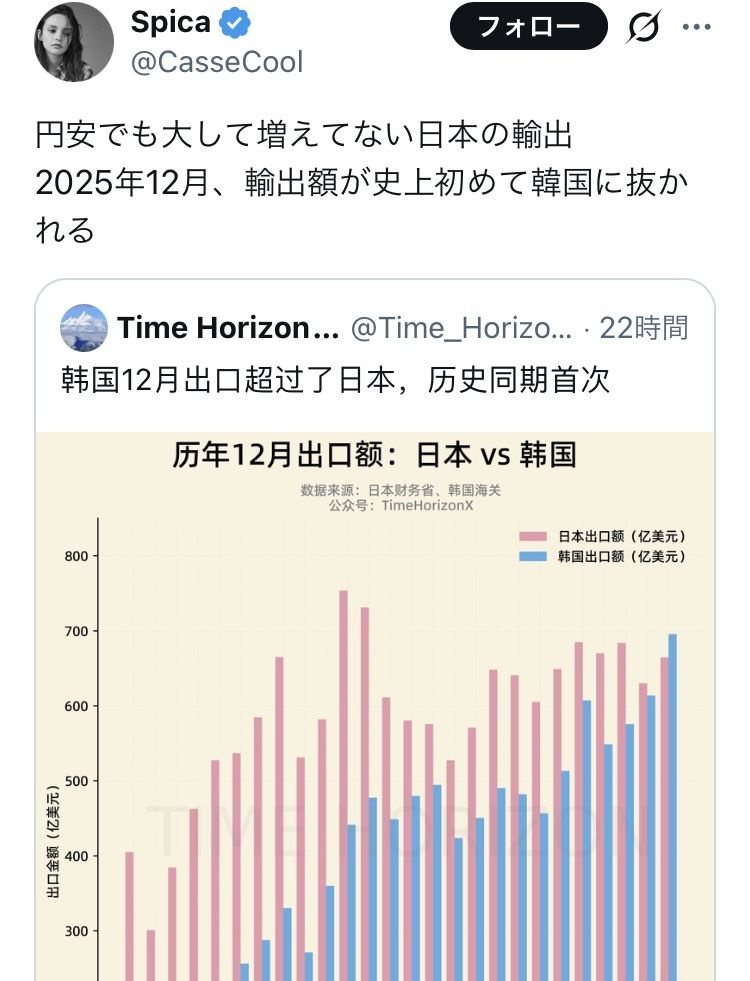 人口が日本の半分以下の韓国に輸出額で負けるのか