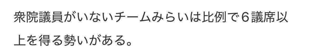 チームみらいは比例で6議席以上を得る勢いがある。