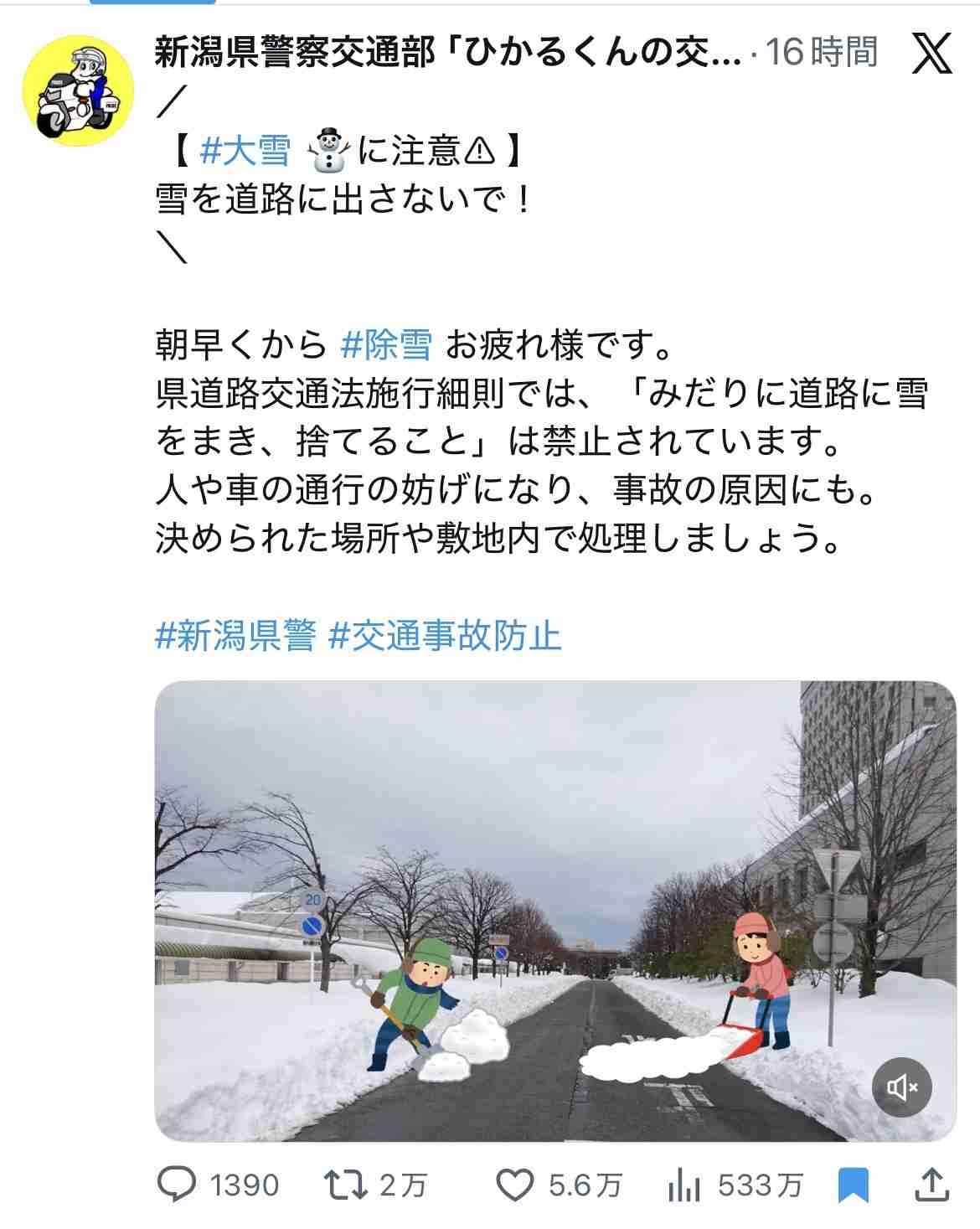 うちも大概雪降る県だけど、cmでわざわざ雪の捨て方について啓発してる