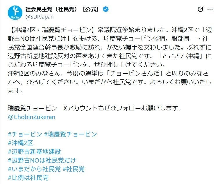 【ファクトチェック】 「辺野古『NO』を訴えるのは社民党だけ」SNS投稿は誤り 衆院選で共産とれいわも主張