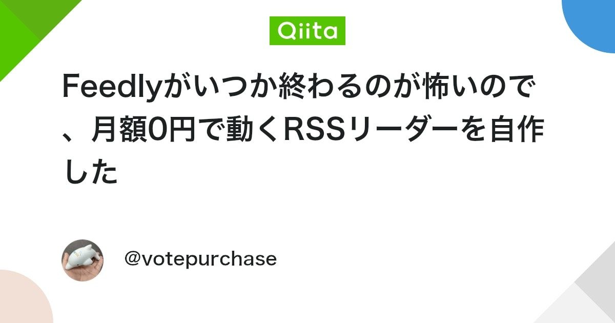 Feedlyがいつか終わるのが怖いので、月額0円で動くRSSリーダーを自作した