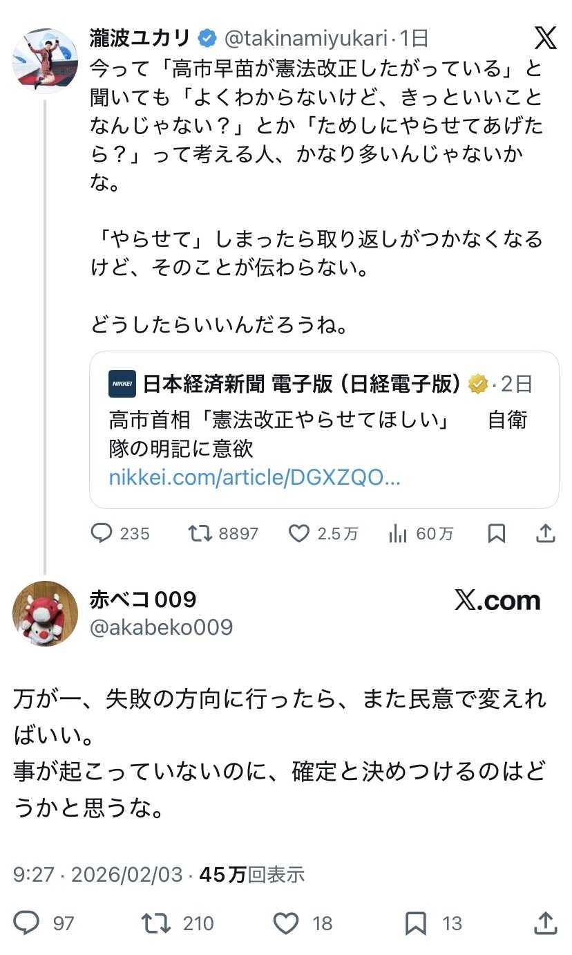 民意で変えられそうになったとき高市なら緊急事態宣言してからスパイ防止法適用するだろ