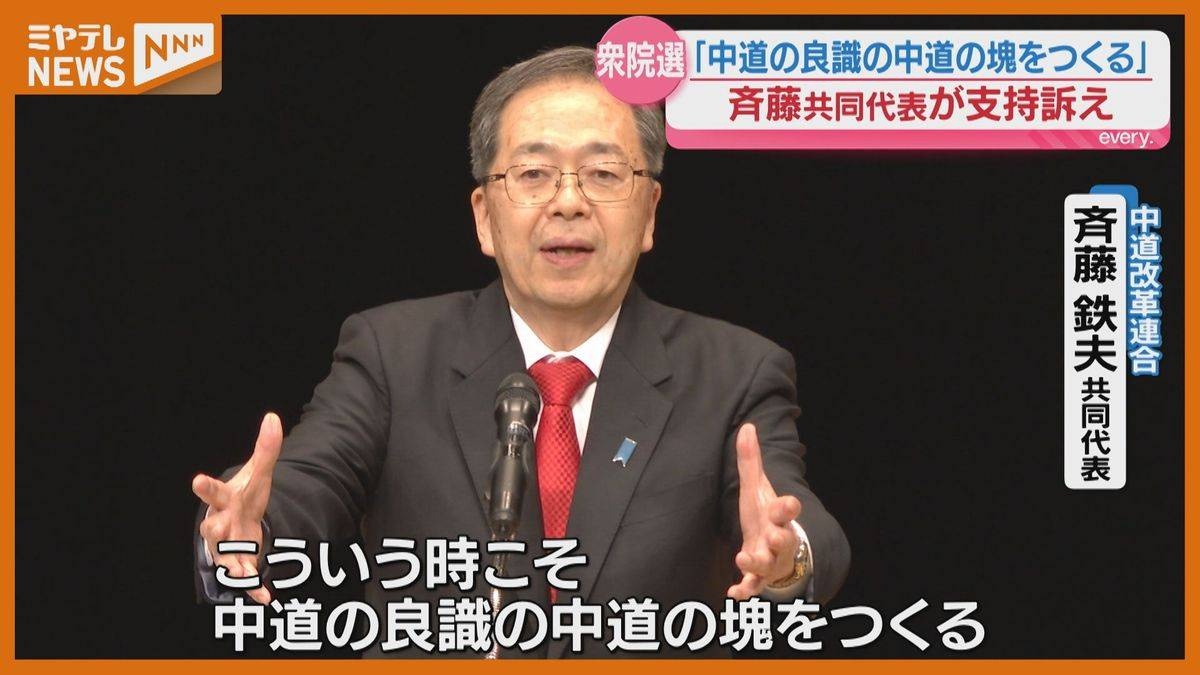 中道改革連合の斉藤共同代表が、仙台市を3日夜 訪れ、中道の理念を訴え候補者への支持拡大を呼びかけました。