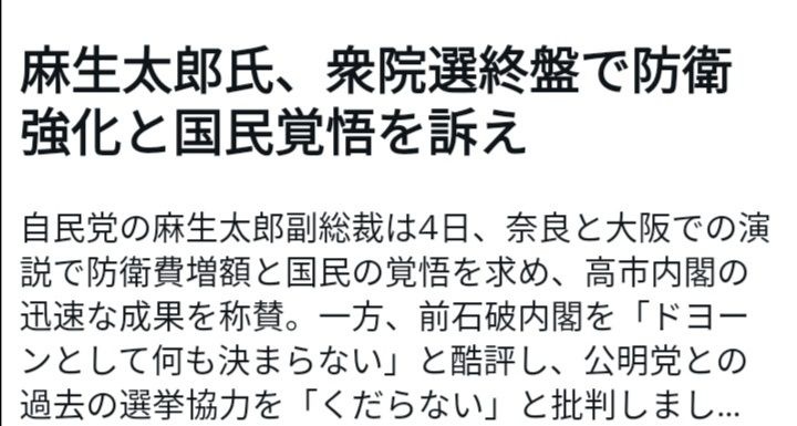麻生太郎💪「国民は戦う『覚悟』を持て。」