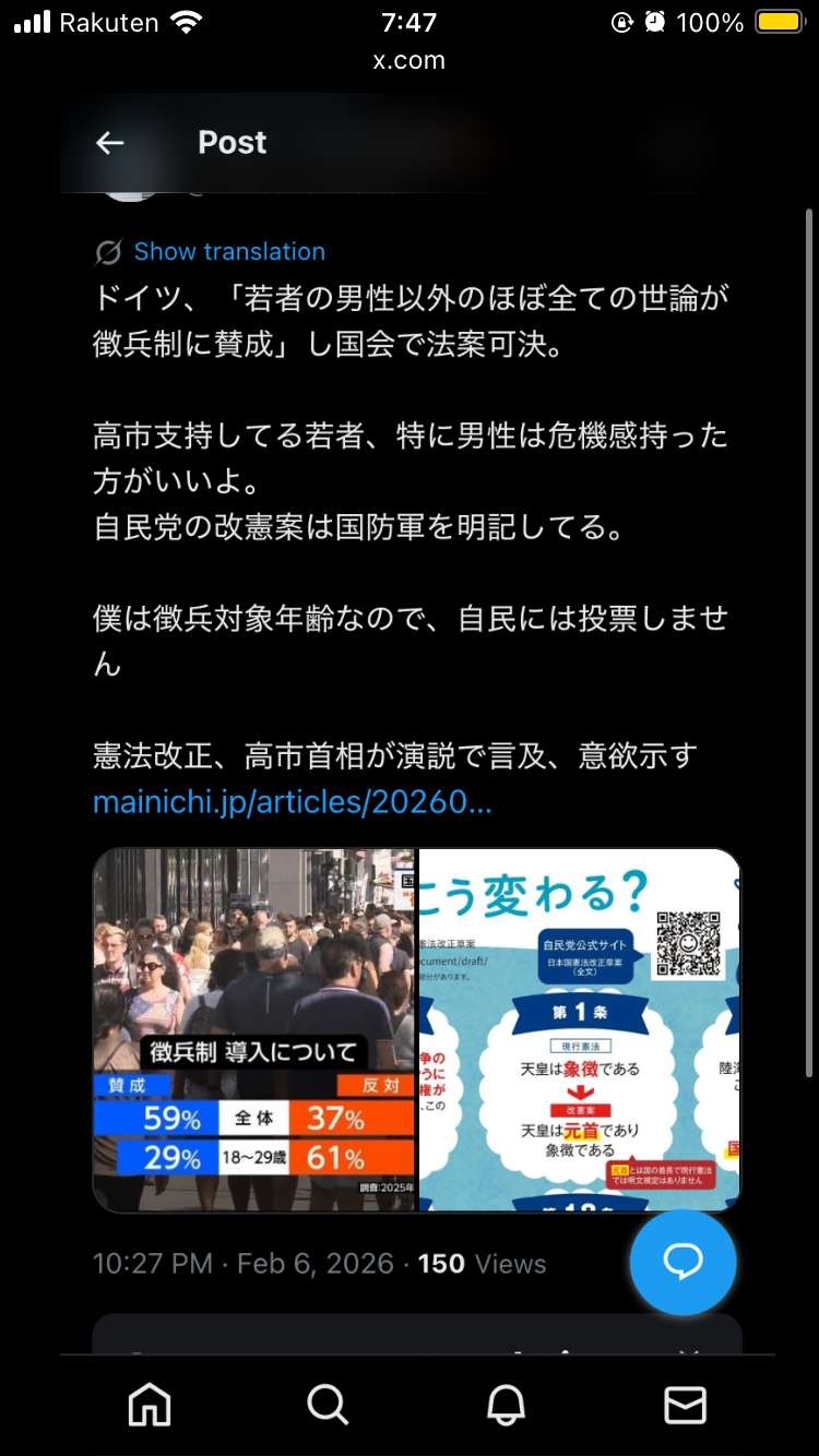 若者の98%は高市支持だから98%は徴兵されたがってる