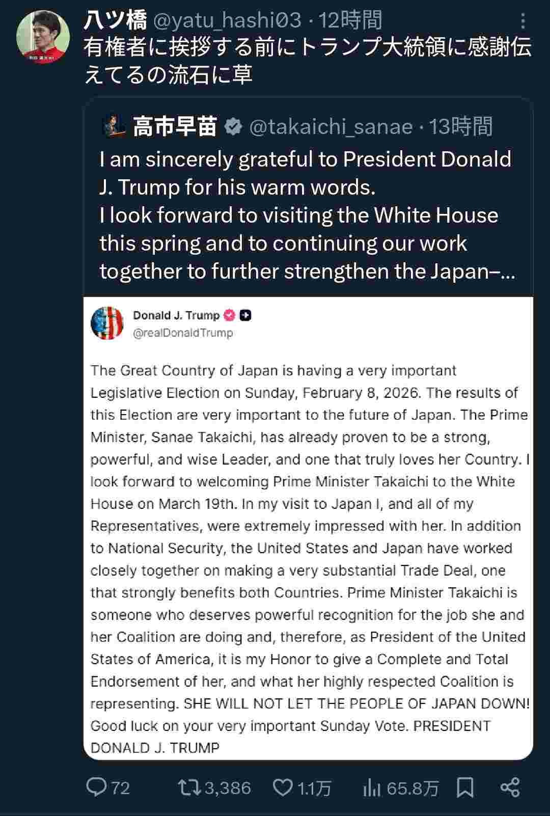 一応トランプは最大の同盟国なんだから当たり前だと思うんやが🤔