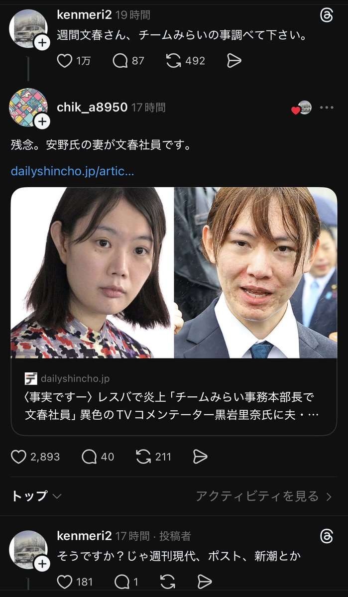 ってか嫁も東大卒業しとるんかなんで文春記者なんかしてんの・・・・