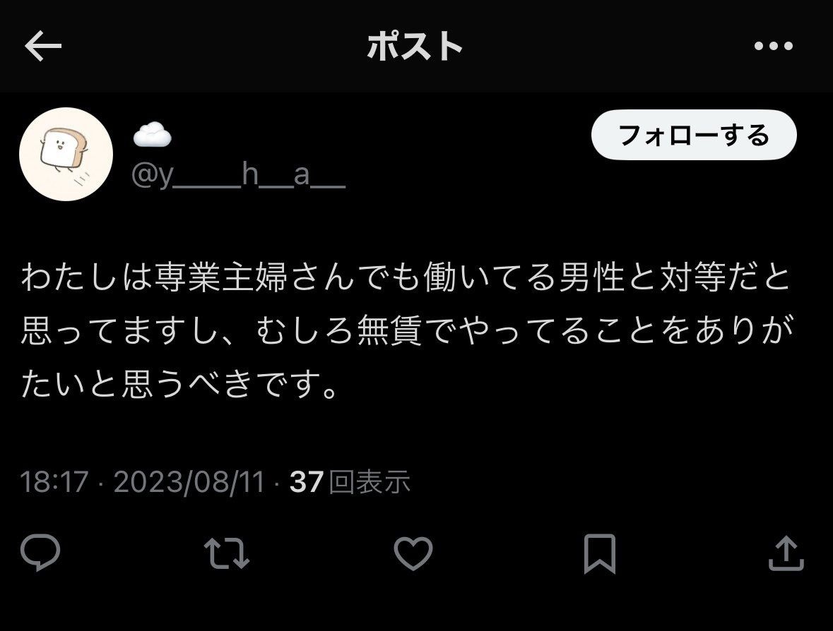 流石に子無しで専業主婦やらせてもらって夫をリスペクトしないまんさんは存在しないか