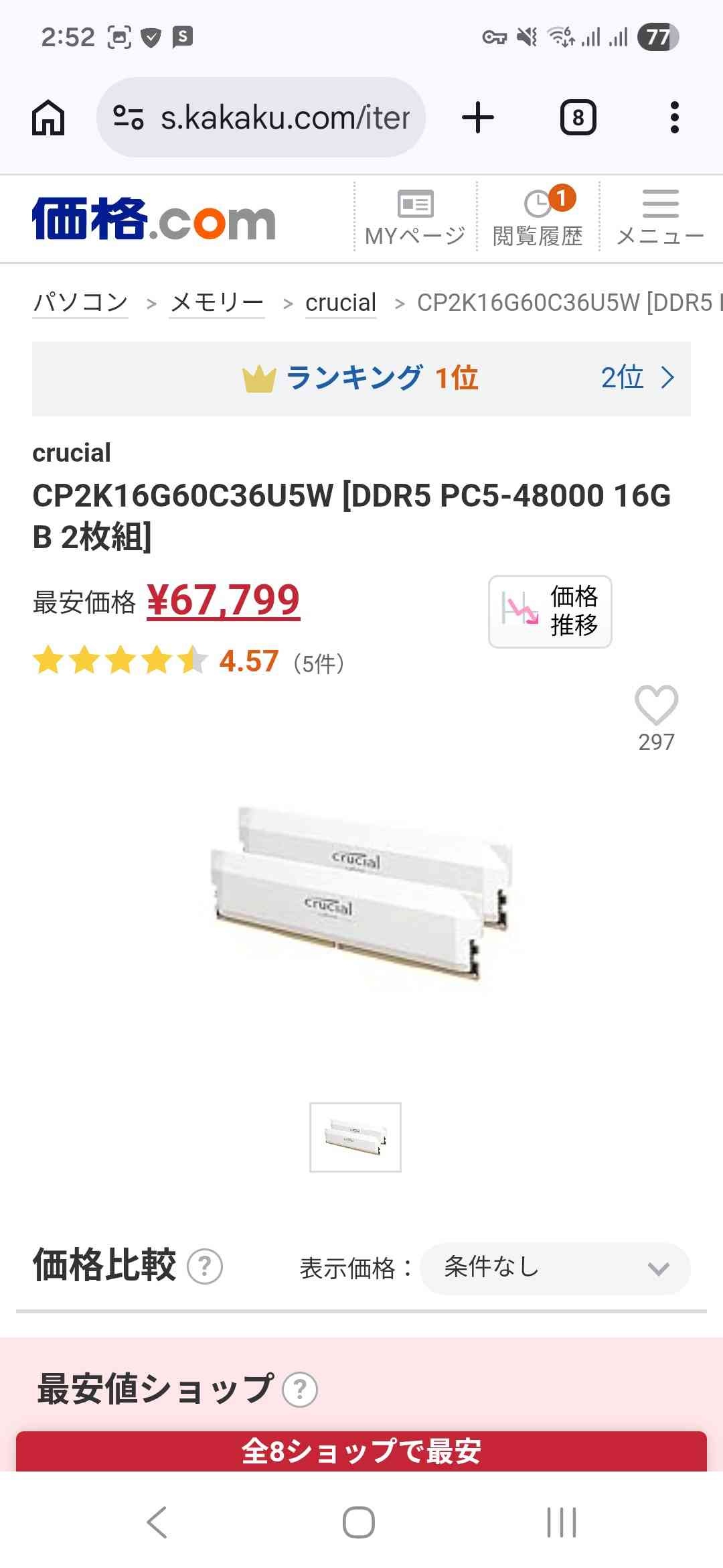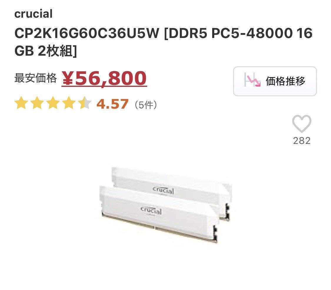 DDR5メモリ、再び値段が上がる。16GB×2枚6.8万円になる…【高市早苗】