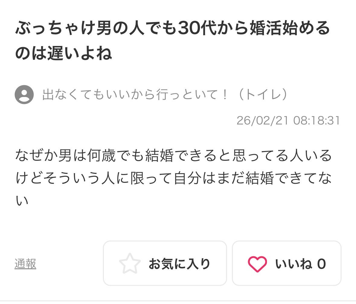 なぜか男は何歳でも結婚できると思ってる人いるけどそういう人に限って自分はまだ結婚できてない・・・ママスタコミュニティは芸能人・有名人のブログから国内外のテレビドラマの実況、最近のニュースやママ友、ファッションなどの話で盛り上がる掲示板です。