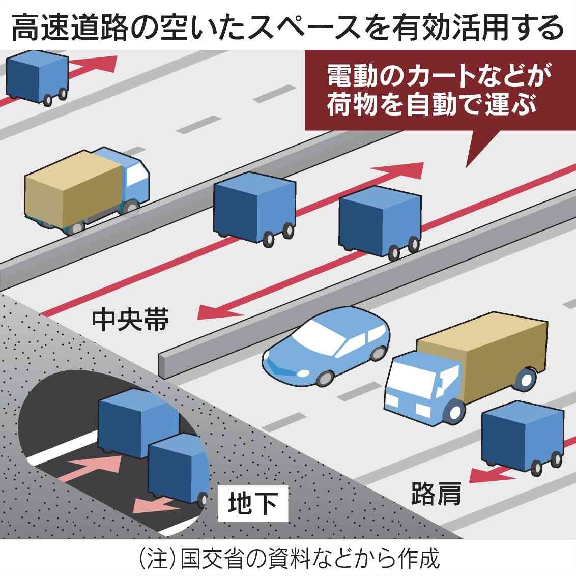 具体的には、東名高速道路の中央分離帯や路肩、地下部分を利用する。これにより、1日あたり1万2000~3万5000台のトラックに相当する輸送力を確保できると試算されている。