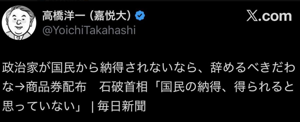 高橋先生は高市が減税しない言い訳に石破と同じレジを理由にした時も石破は叩いて高市はダンマリだったから今回もスルーするだけじゃないかな