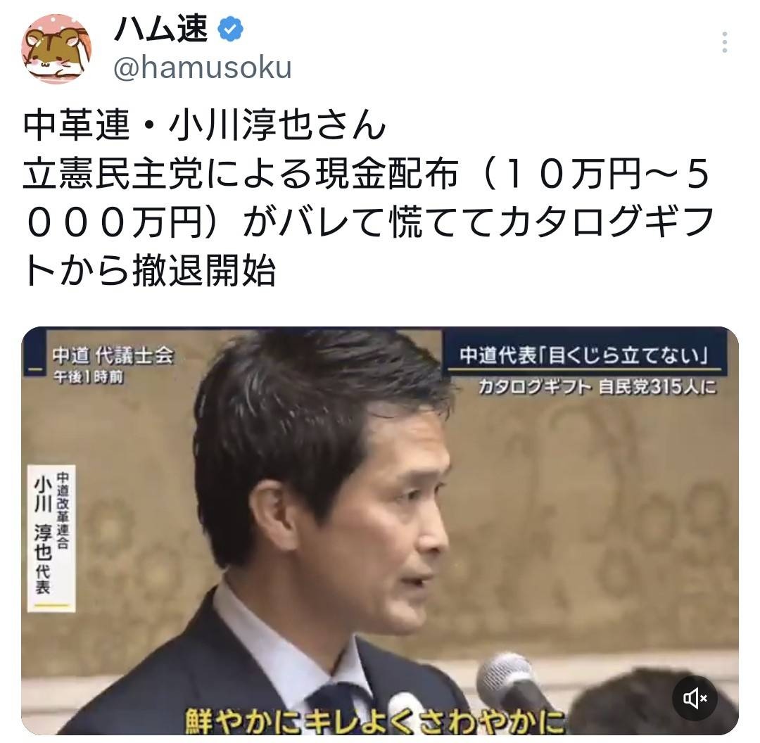 Xで中道の議員がぶちギレてるし、小川に関しては捏造したやつひとつ消した