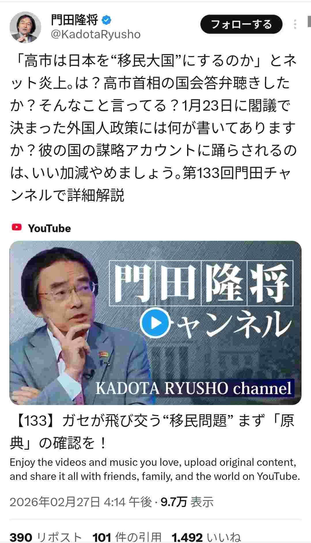 こいつ移民賛成派なのか?