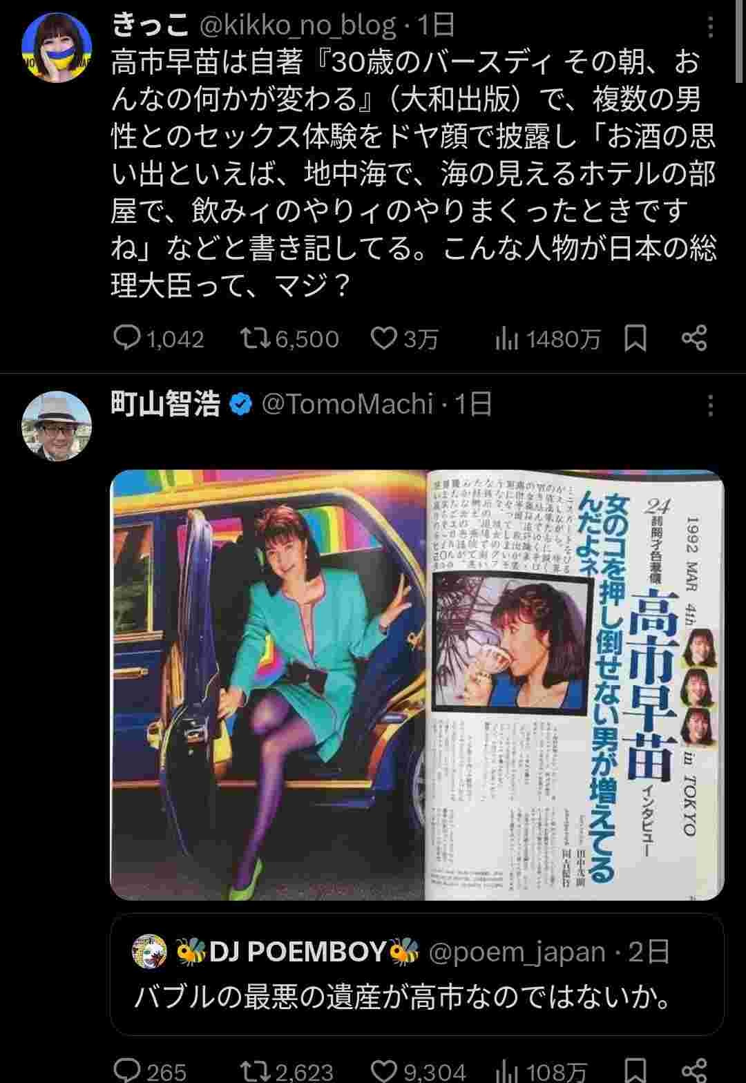 高市早苗🦎の飲みィのやりィの、Xで今更蒸し返されバズる