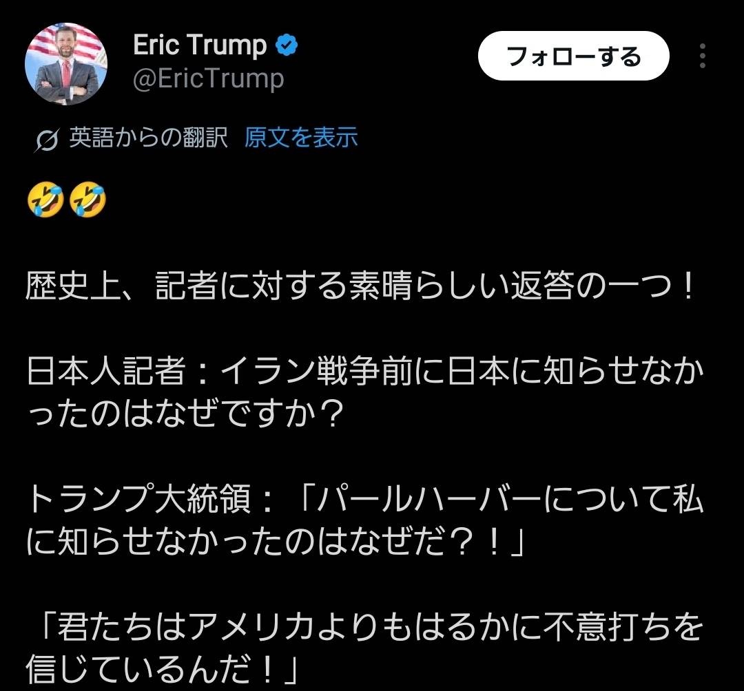 日本人記者も「では、その余裕のない騙し討ちをしたアメリカは、太平洋戦争で負けた日本同様にイラン戦争で負けるわけですね」とか言い返せば良かったのにw