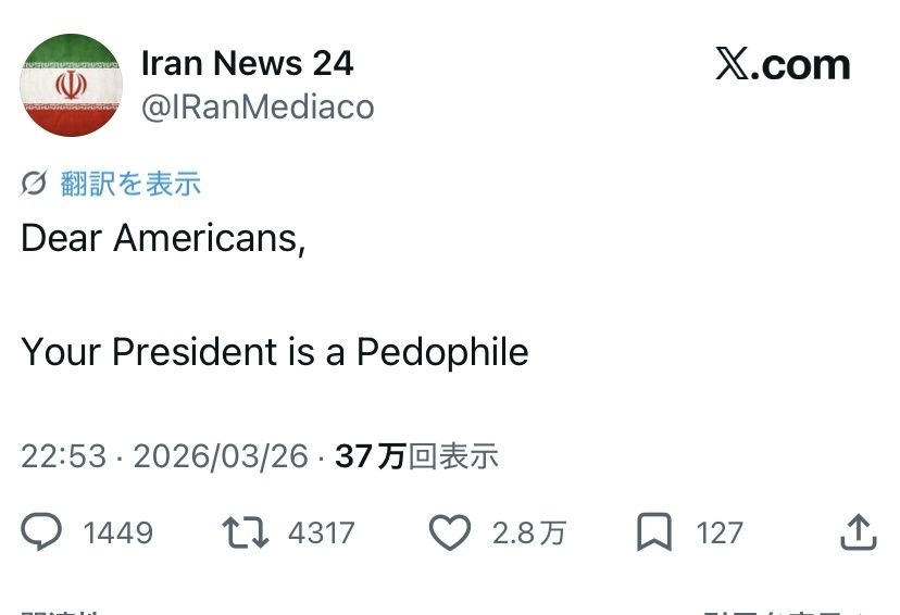 イランもペド隠し戦争と指摘し始めたか