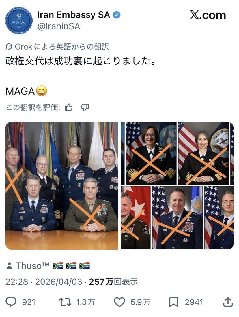 イランでの地上戦に反対しそうなのを大粛清してるんだろうけどこれ独ソ戦の初期にスターリンがやったのみたいに米軍が弱体化するんじゃないか