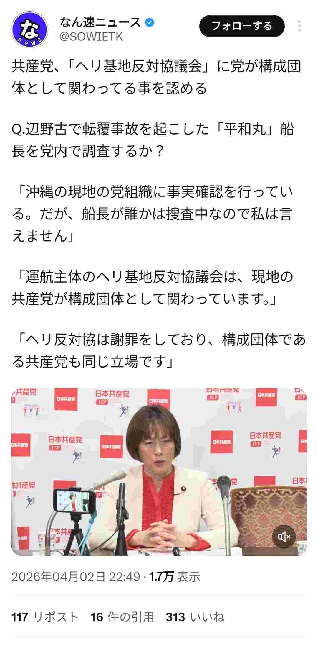 こう言う真摯な姿勢が共産党が支持されない原因だよ。