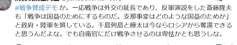 反軍演説を引用してるが千島樺太占領こそ“国益”皆無だろ…