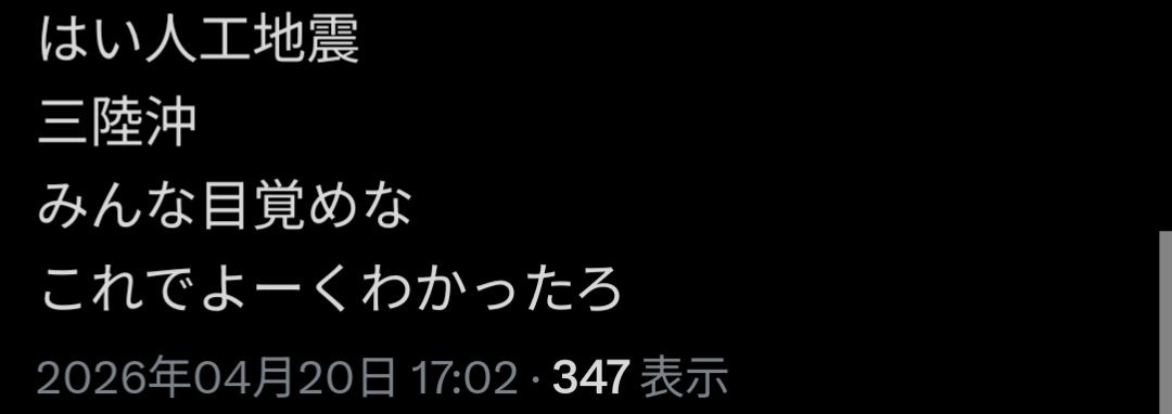 人工地震、で検索するとわらわら陰謀論に頭イカれたゲェジがいるけど