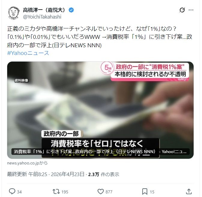 高橋洋一はだいぶ前から正義のミカタで減税しろって言ってたと思う