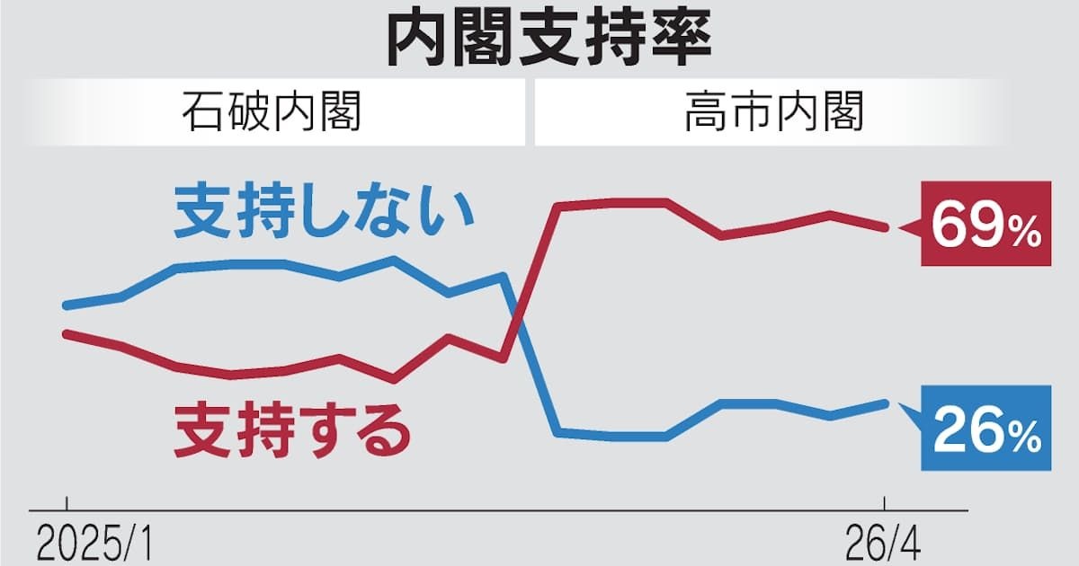 【史上初】支持率69% サナ内閣は発足後、6割台後半以上の高い水準を維持、現行調査方法になった02年以降に発足した政権で例ない