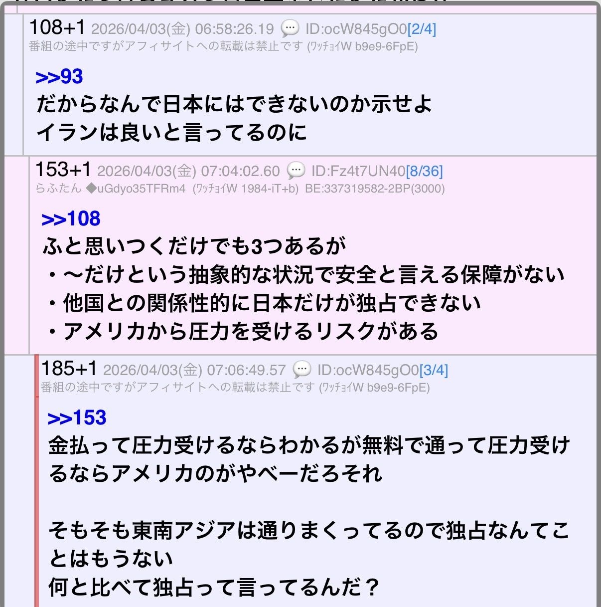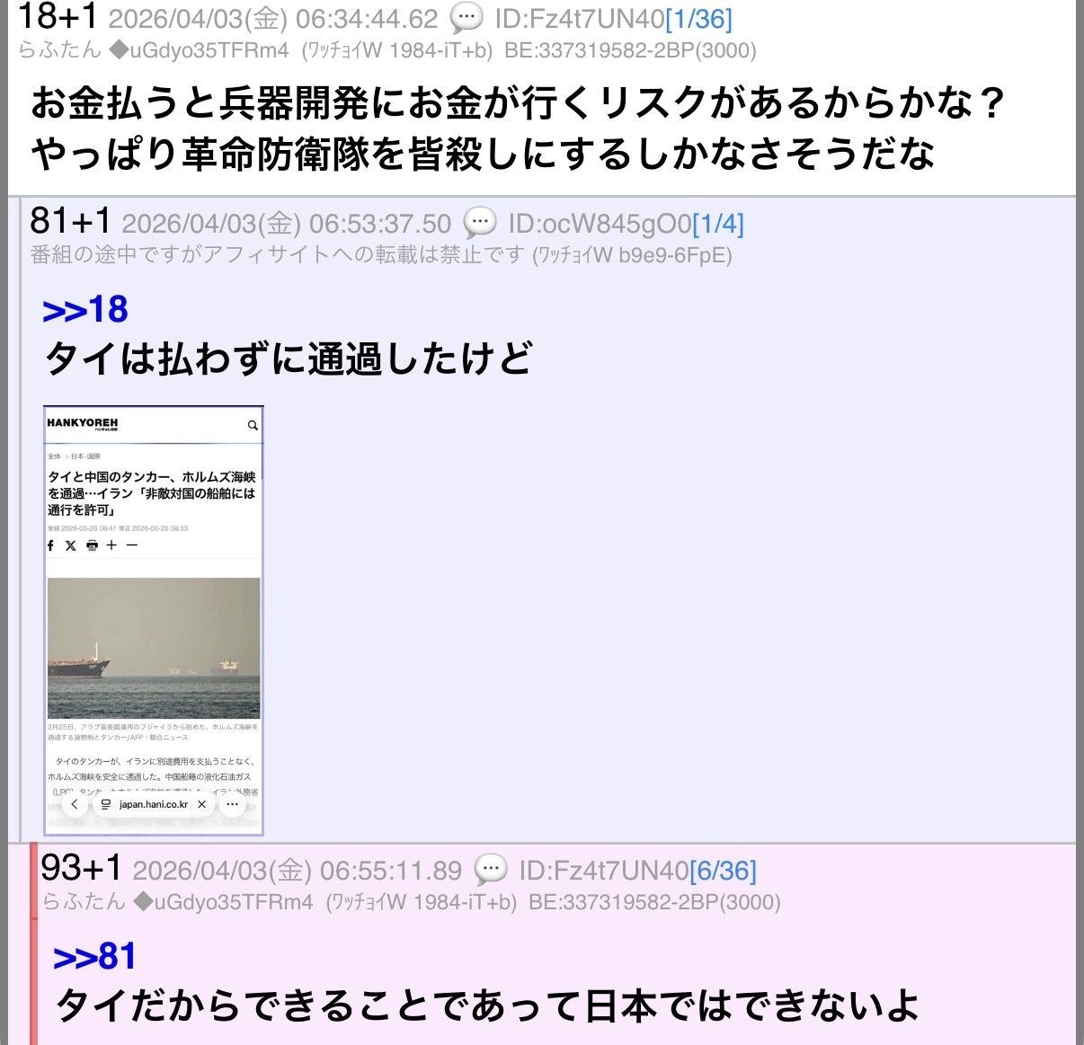 1:らふたん ◆uGdyo35TFRm4 (ワッチョイW 19ab-iT+b):2026/04/03(金) 19:46:22.60 ID:jafiSiMQ0●[1/6] BE:337319582-2BP(4000)
