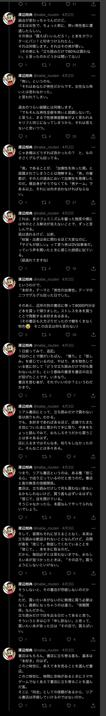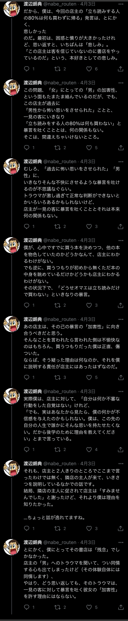 女性の連帯を謳った女性経営の小さな本屋さん(なので客層もほぼ女性)で立ち読みを注意された中年男性、あくまで俺は正しいを主張 - 8 : 2022/04/05(火) 20:38:28.60 ID:+xKqnwxo0