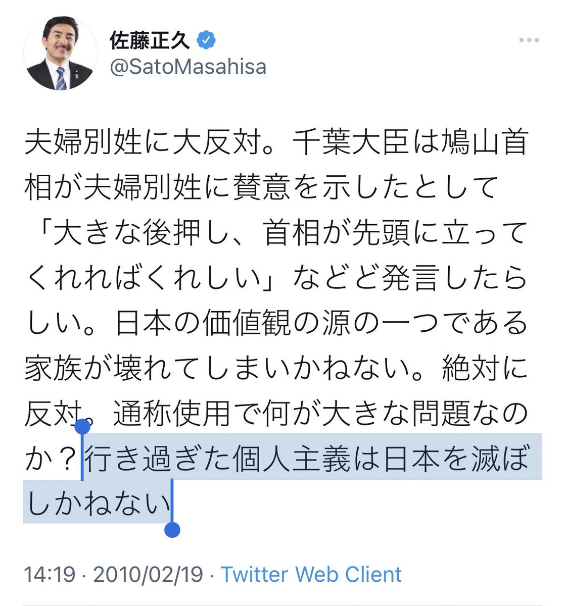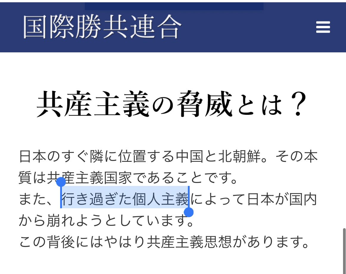 では自.民.党議員や国際勝共連合や神道政治連盟が個人の権利拡大を否定するために必ず使うワードが同じ「行き過ぎた個人主義」というのは #偶然の一致 だと思いますか?それとも #必然の一致 ですか?