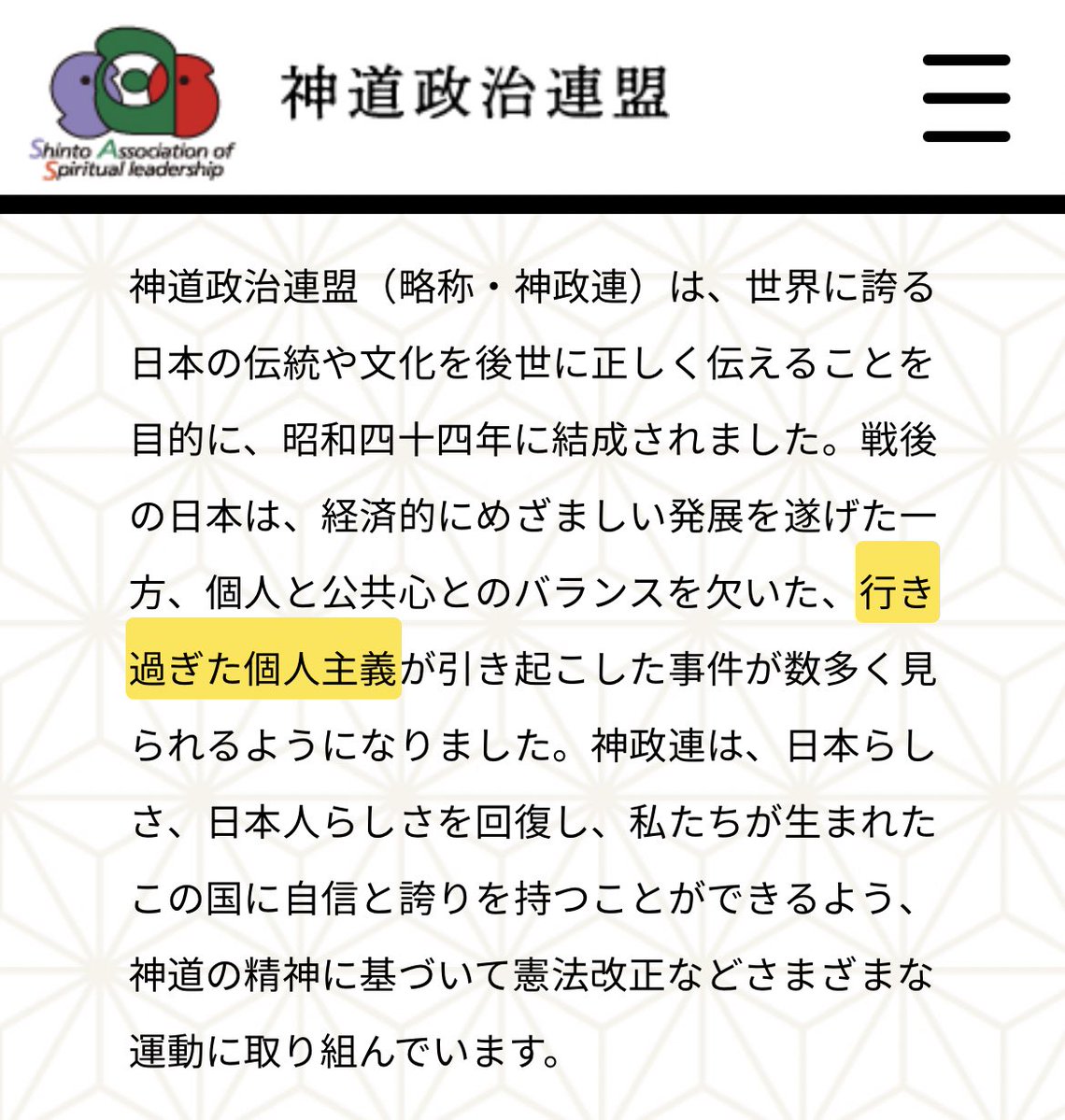 自民党議員、国際勝共連合、神道政治連盟が使うワードが同じ「行き過ぎた個人主義」 統一されすぎる…😲