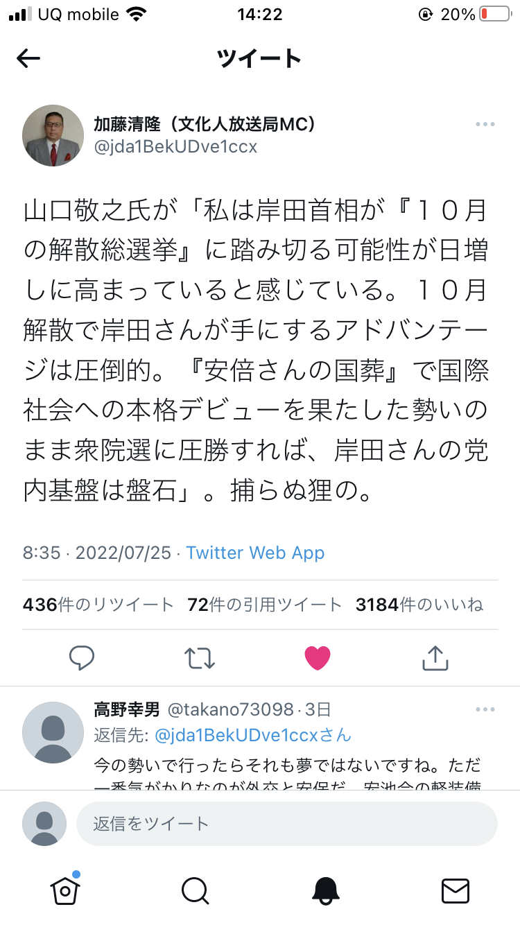 岸田を追い落としたい安倍ウヨ統一ウヨの妄想 - 21 : 2022/07/28(木) 14:30:45.96 ID:3uH5dd7b0