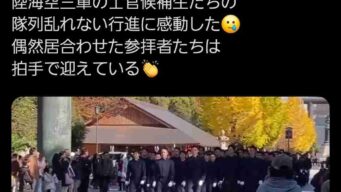 嫌儲 防衛大学生、横須賀から徹夜で靖国まで行進😤参拝者達は拍手で迎える【日帝しぐさ】