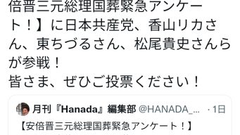嫌儲 Hanada「助けて!共産党、香山リカ、東ちづる、松尾貴史らが参戦してきたの😭皆投票して!」😈