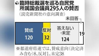 嫌儲 自民党臨時総裁選の実施「賛成」128、「反対」33…前回よりも石破おろしに反対が記名公表が裏目に出てしまい10も減ってしまう