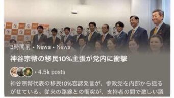 嫌儲 参政党神谷代表「日本は元々移民の国。OECD加盟国平均と同じ全人口の10%まで移民受け入れ可能」→党内さやなどに動揺広がる…
