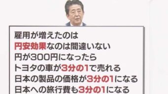 嫌儲 安倍晋三「1ドル300円で日本車が売れまくり、外国人観光客が爆増して日本は復活する」