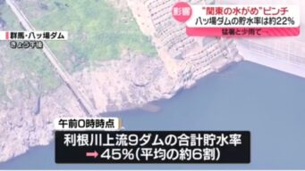 嫌儲 猛暑と小雨で関東の水がめでも貯水率が減少。50%を下回る。国交省が節水を呼びかけ