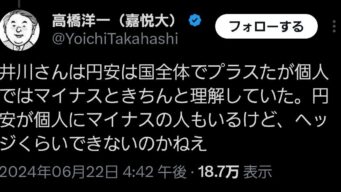 嫌儲 高市のブレーン、トケドロ高橋「円安が個人にマイナスなのは当たり前😤ヘッジぐらいしろよ!」🤔