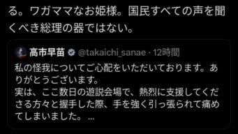 なんG 高市早苗さん、昨日左腕につけていたサポーターが今日は右腕に移ってしまう