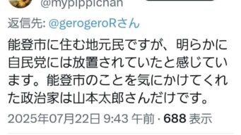 嫌儲 自称能登市在住のれいわ支持者さん「能登市のことを気にかけてくれた政治家は山本太郎だけ!」