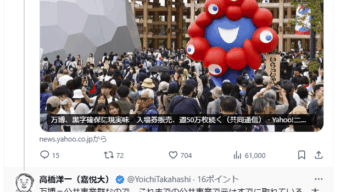 嫌儲 【さや悲報】万博、大成功で終わりそう 来場者数過去最多、ミャクミャクも人気に 逆張りモメン全員死亡へ