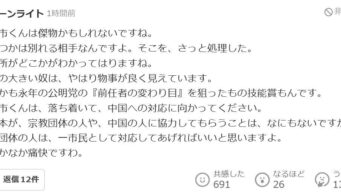 嫌儲 ヤフコメ「高市早苗は傑物! 公明党をさっと処理してやったわwww」