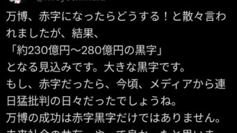 嫌儲 日本政府「大阪万博は記録的な盛況となり、大幅な黒字を見通す。万博のレガシーをいかに活かしていくか議論する」