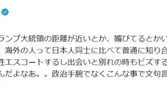 嫌儲 フランス人「日本人が高市早苗さんがトランプに媚びてると叩いてて唖然…欧米中韓等先進国ではこれくらいのコミュニケーションは普通だよ