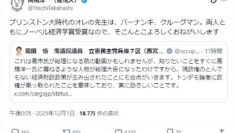 嫌儲 立憲「トンデモ論者に乗っ取られた高市政権」高橋洋一「プリンストン大時代のオレの先生はノーベル経済学賞受賞なのでよろしく
