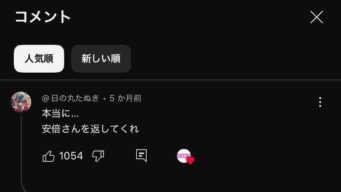 嫌儲 コメント欄がお前らに汚染されてない綺麗な安倍晋三ホルホル動画が発見される