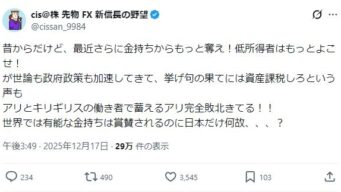 嫌儲 高市政権、超富裕層の追加課税、現行所得30億円から1億円に引き下げで増税